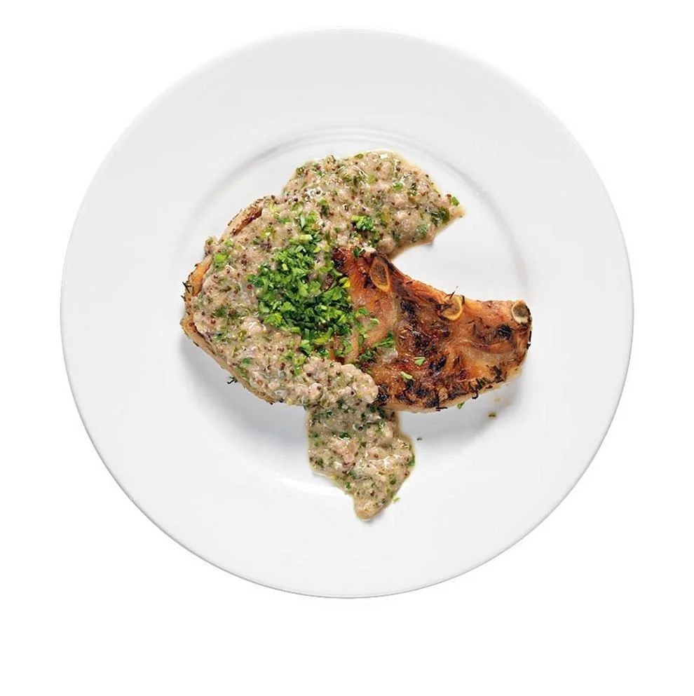 ШАГ 5 Подавать мясо, обильно полив его соусом и посыпав мелко нарубленной петрушкой.