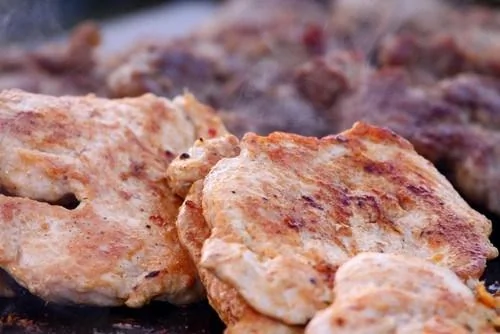 ШАГ 1 Разогрейте гриль или мангал. Тем временем, натрите куски мяса зубчиком чеснока и оставьте на некоторое время.