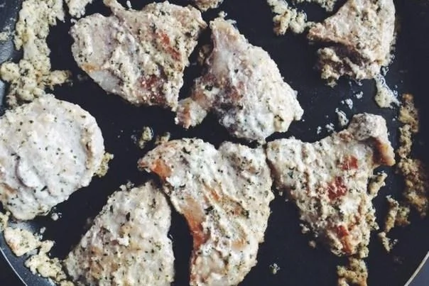 ШАГ 2 Мясо положить на горячую сковороду, поджарить на собственном соку до полуготовности.