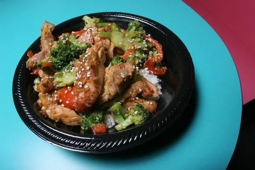 Пикантное жаркое из курицы по китайски с брокколи, перцем и огурцом