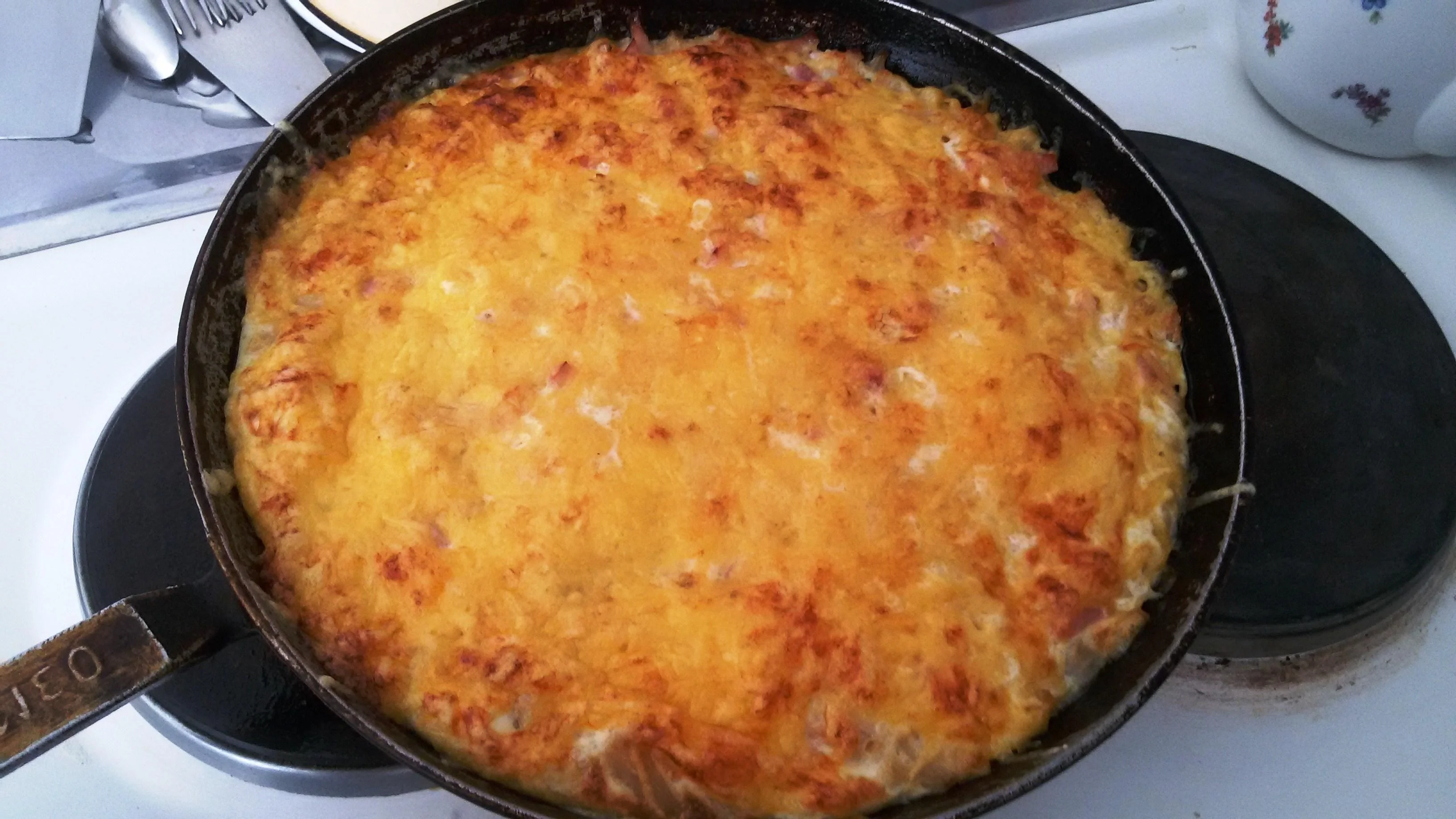 ШАГ 5 Яйца взбейте, смешайте с молоком и сливками. Оставшиеся панировочные сухари смешайте с мукой и мускатным орехом, разведите в небольшом количестве молока или воды и введите тонкой струйкой в яично-молочную смесь. Посолите, поперчите. Осторожно залейте получившейся смесью овощи с ветчиной, посыпьте тертым сыром и запекайте 30 минут.