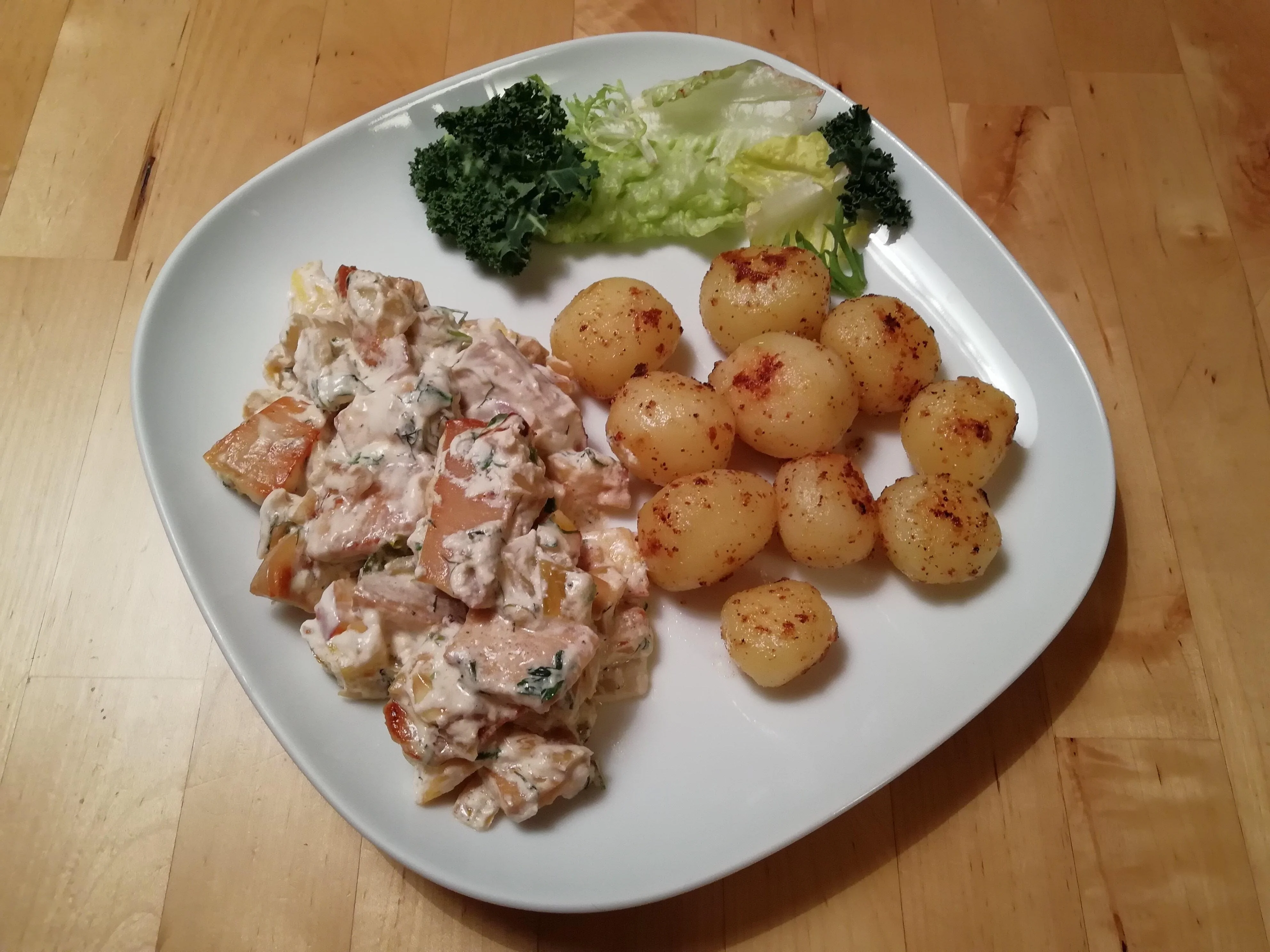 Ингредиенты для приготовления Индейка в горшочке со сметаной и персиками: