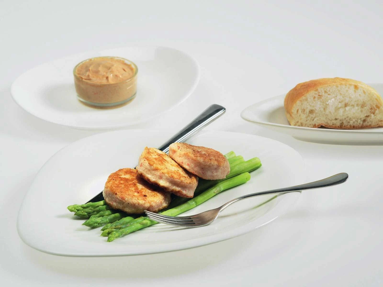 ШАГ 4 Тщательно перемешать кимчи, майонез и паприку. Подавать котлеты с получившимся соусом и отварной спаржей.