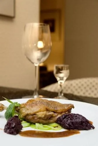 ШАГ 6 Нагрейте белое вино и уварите наполовину. Приправьте солью и перцем. Полейте винным соусом готовые грудки.