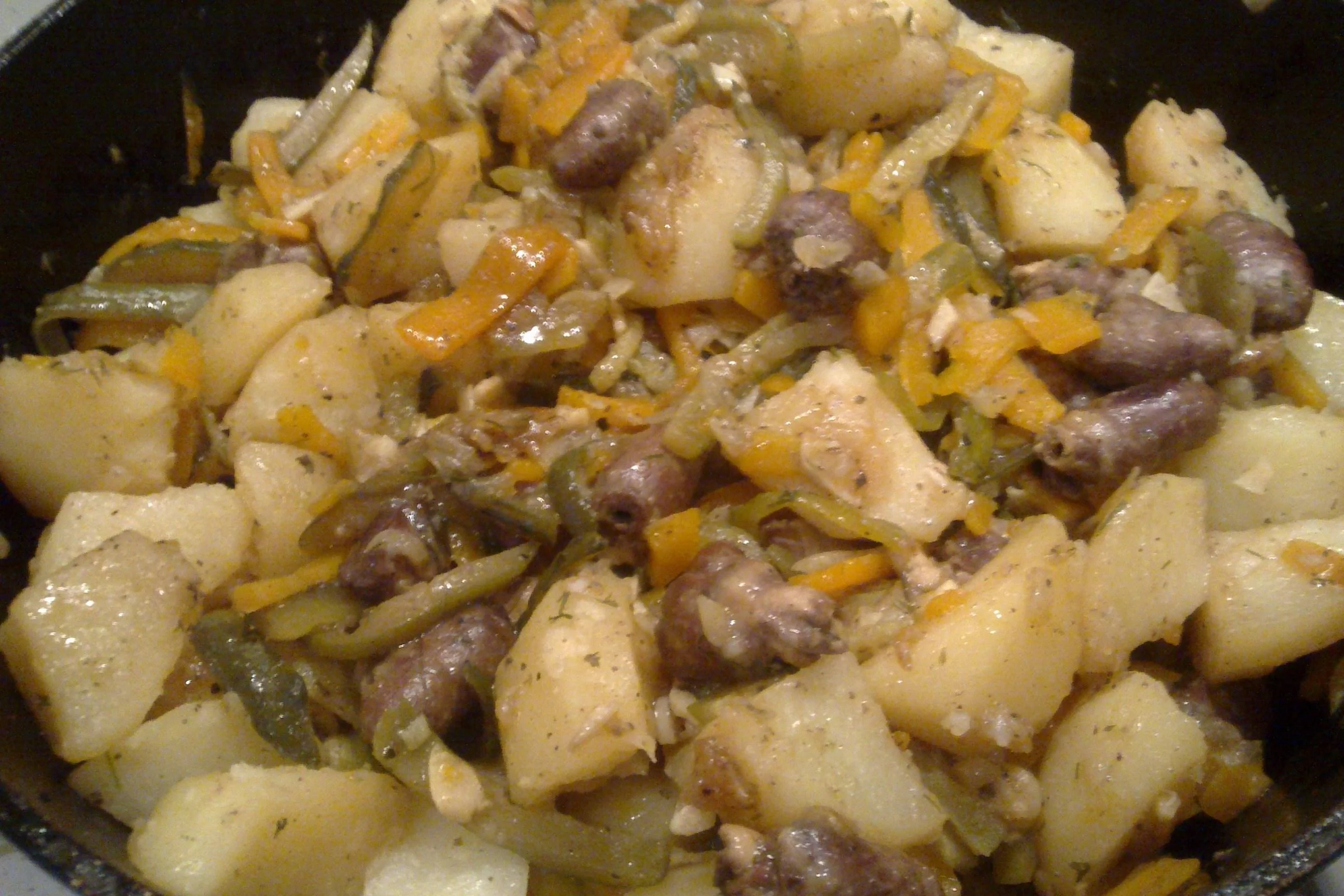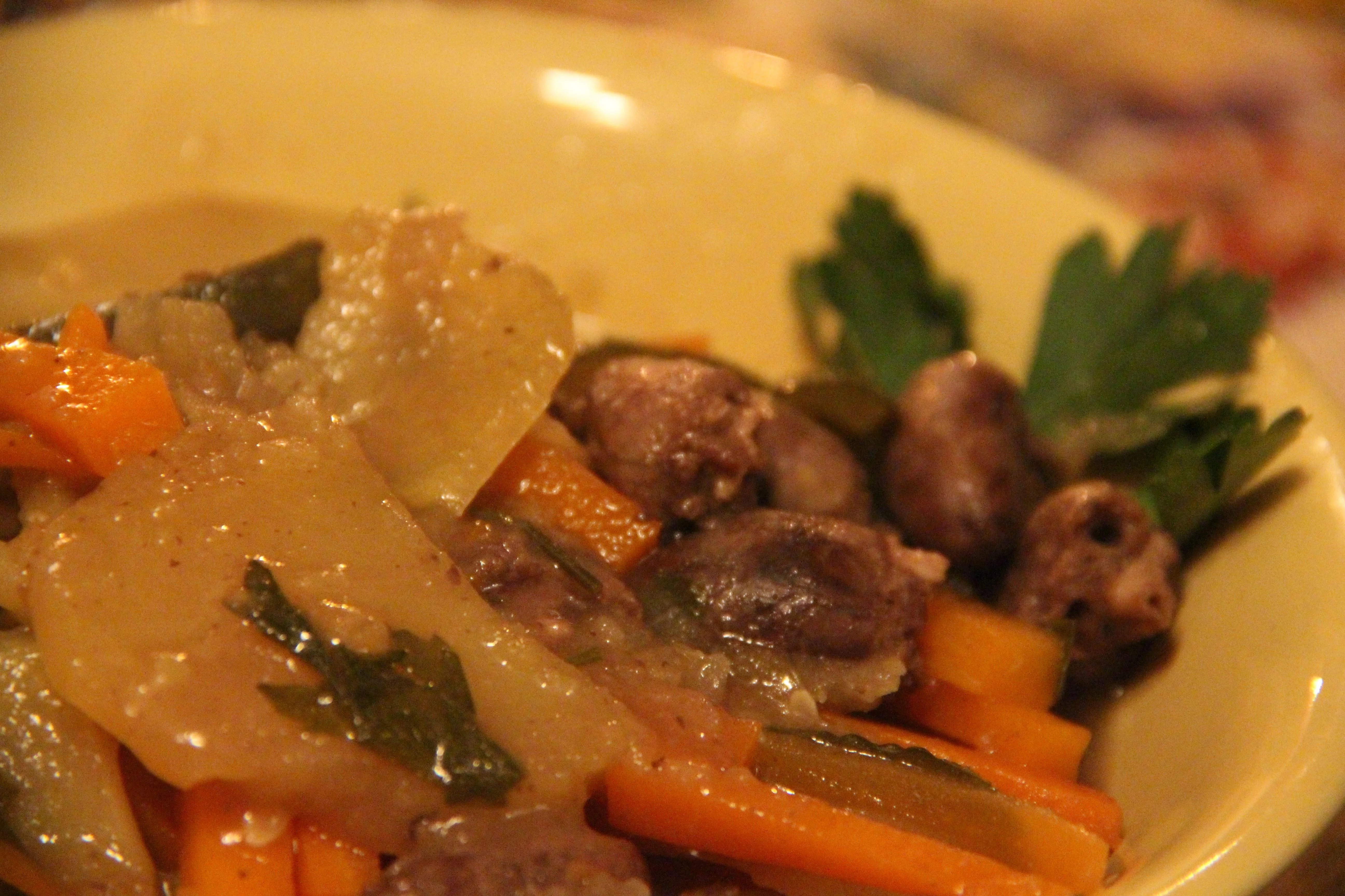 Жаркое из куриных сердец с овощами и пивом