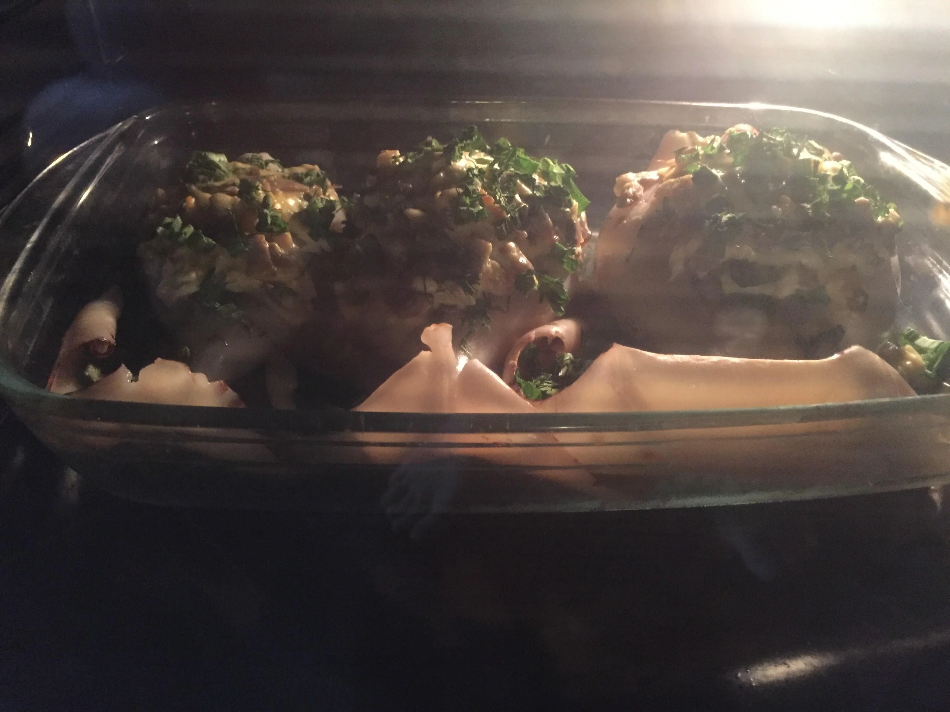 ШАГ 5 Выложите нафаршированные кальмары на фольгу, смажьте их маслом и посыпьте мелко нарубленной зеленью. Заверните плотно края фольги и запекайте в духовке около 20 минут при температуре 200 градусов.