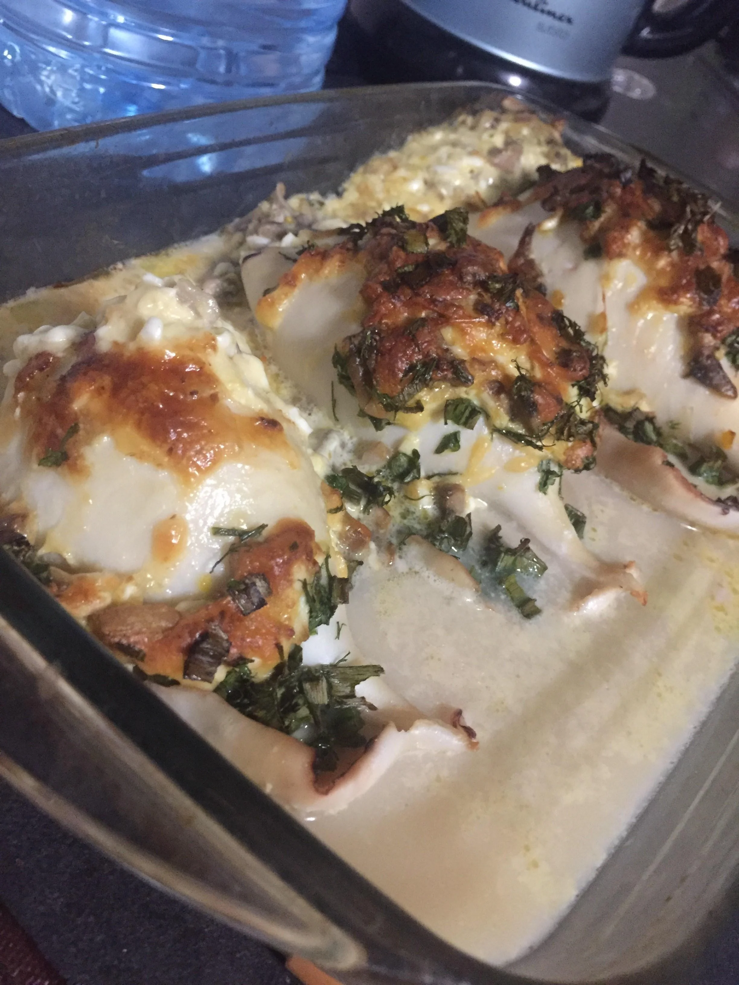 Ингредиенты для приготовления Кальмары, фаршированные грибами и сыром: