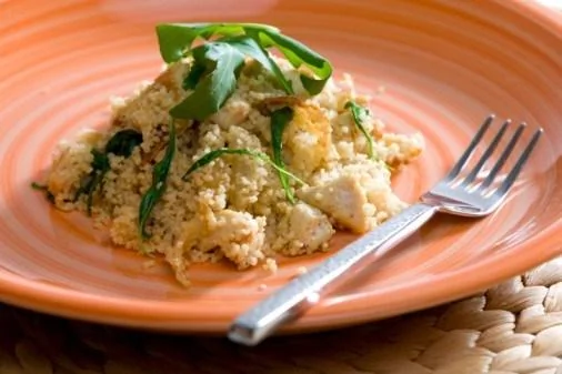 ШАГ 3 Затем добавьте шерри, мед, лавровый лист, влейте куриный бульон и доведите до кипения. Закройте крышкой и тушите 30-35 минут. Подавайте со свежим кориандром и кускусом.