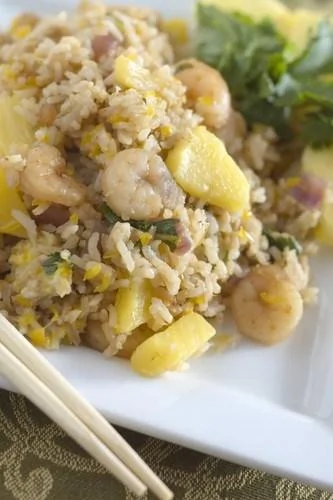 Ингредиенты для приготовления Тайский жареный рис с креветками и ананасами: