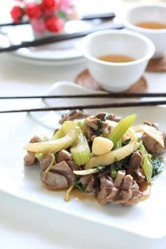 Жареная курица с сельдереем и имбирем (Jirou Chao Qincai)