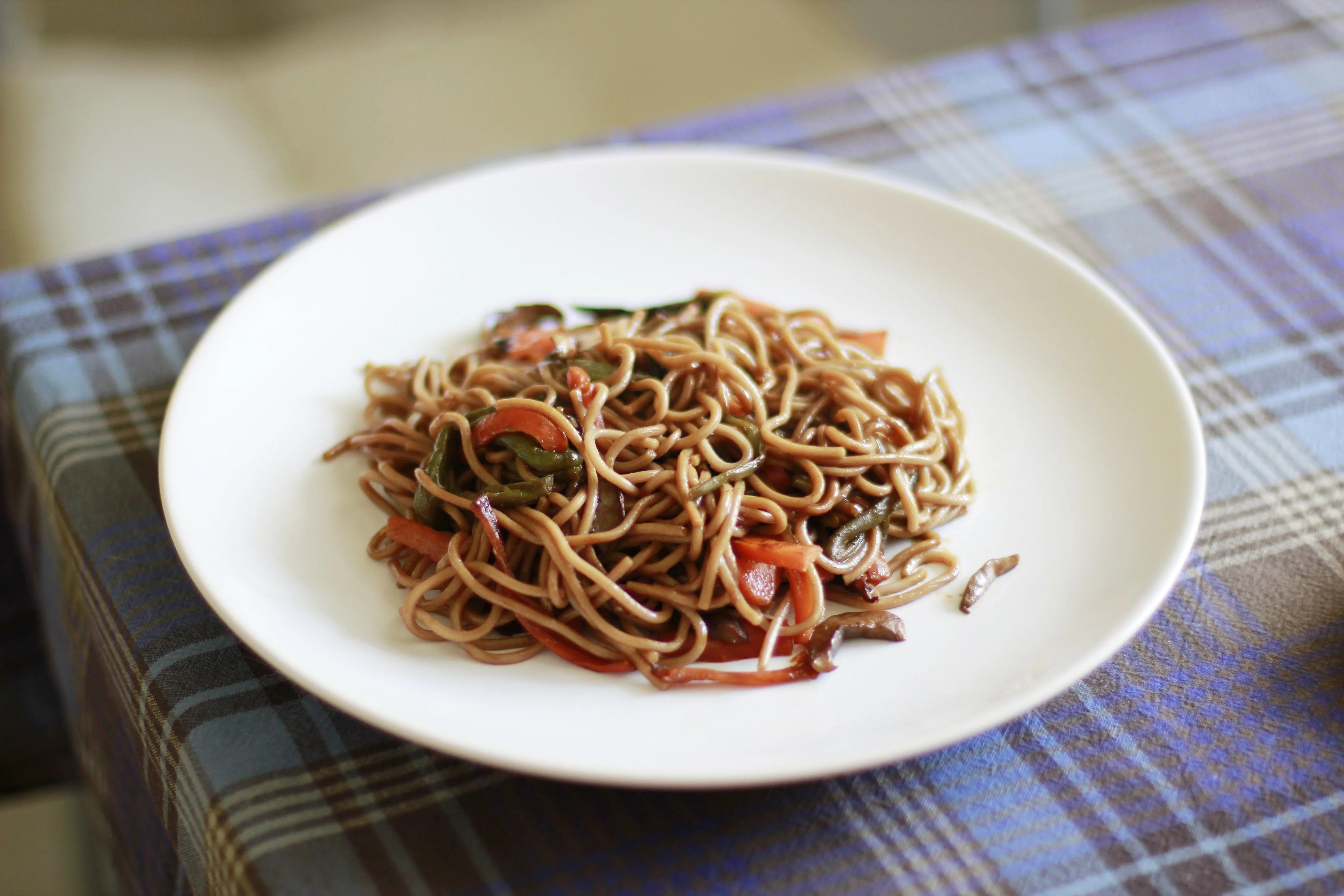 Гречневая лапша с овощами и креветками
