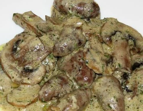 Куриные сердца в горчично-сырном соусе