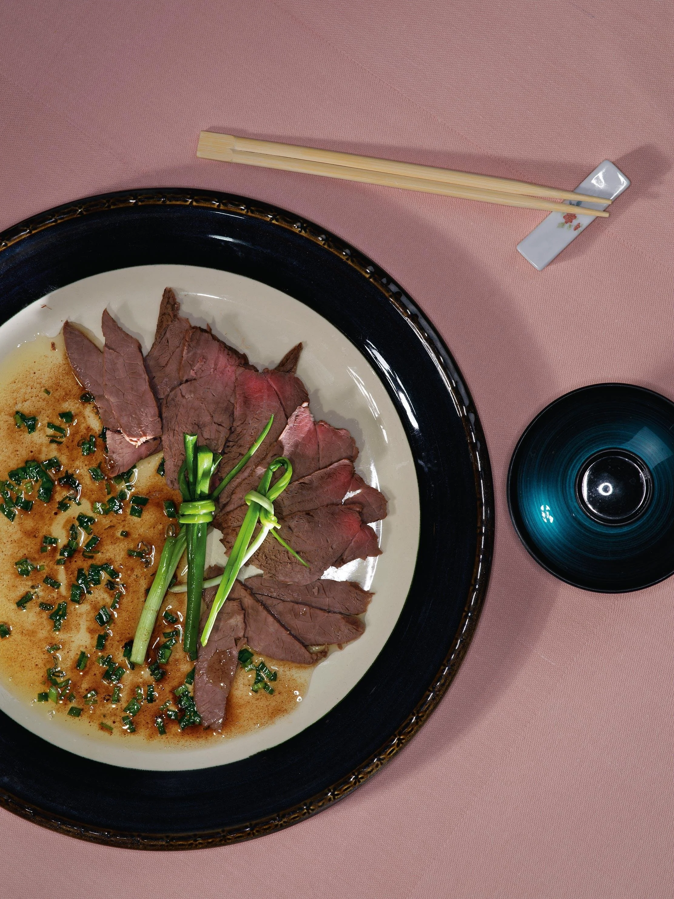ШАГ 5 Извлечь мясо, охладить и подавать либо с бульоном, либо с нарезанным зеленым луком, кунжутным маслом и лимонным соком.