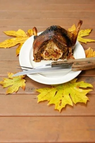 Жареная утка, фаршированная рисом, орехами и ароматными травами