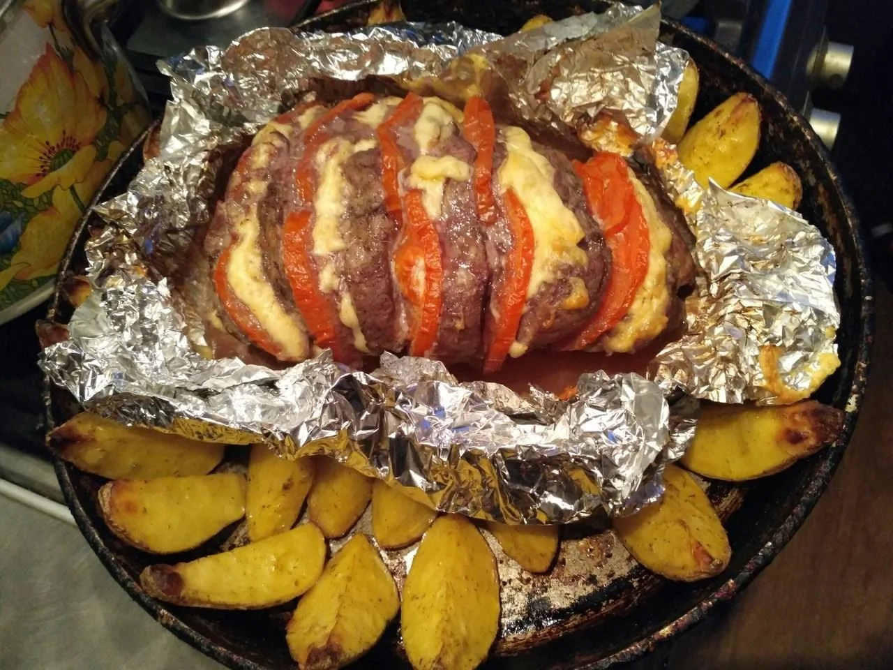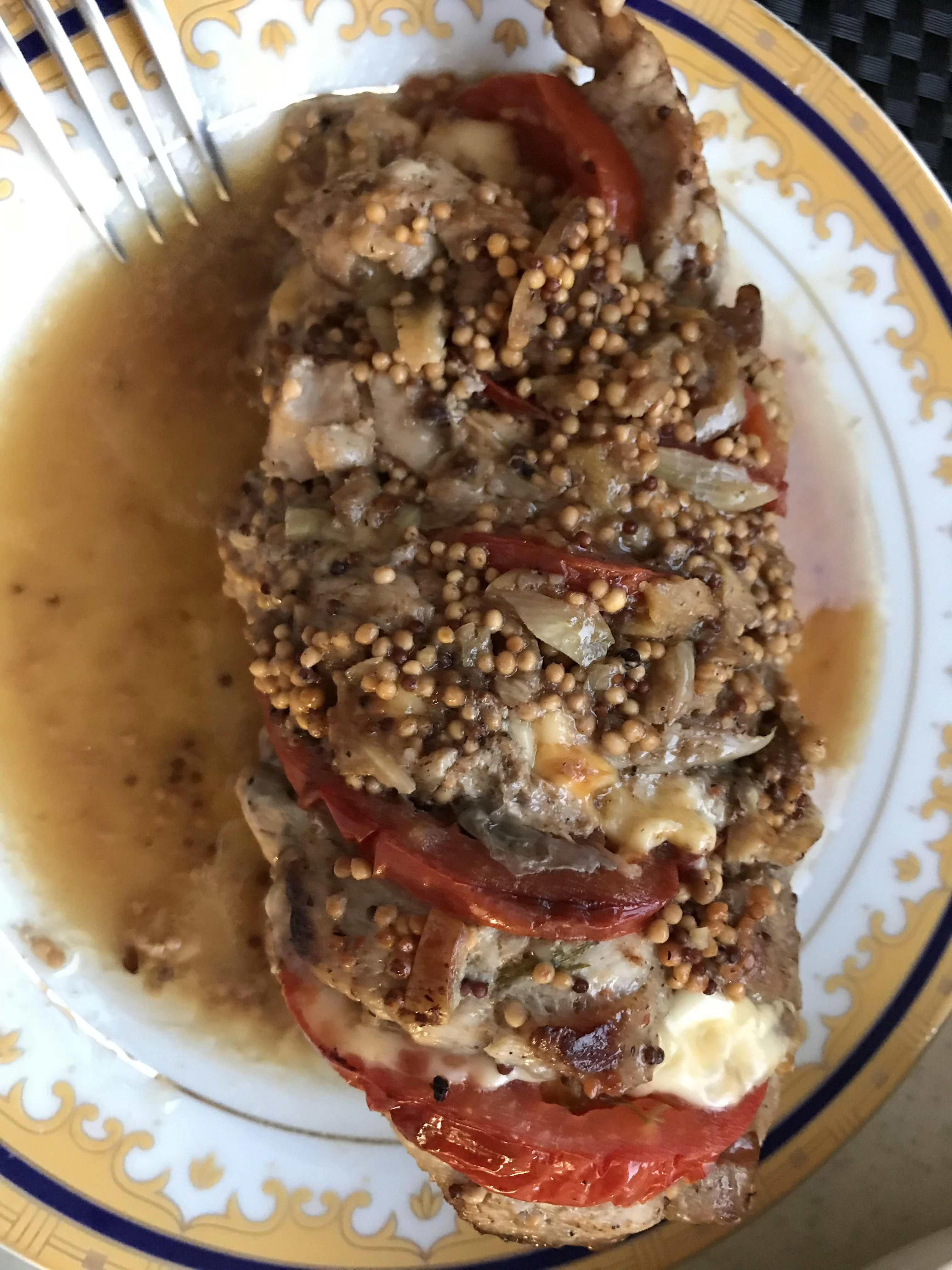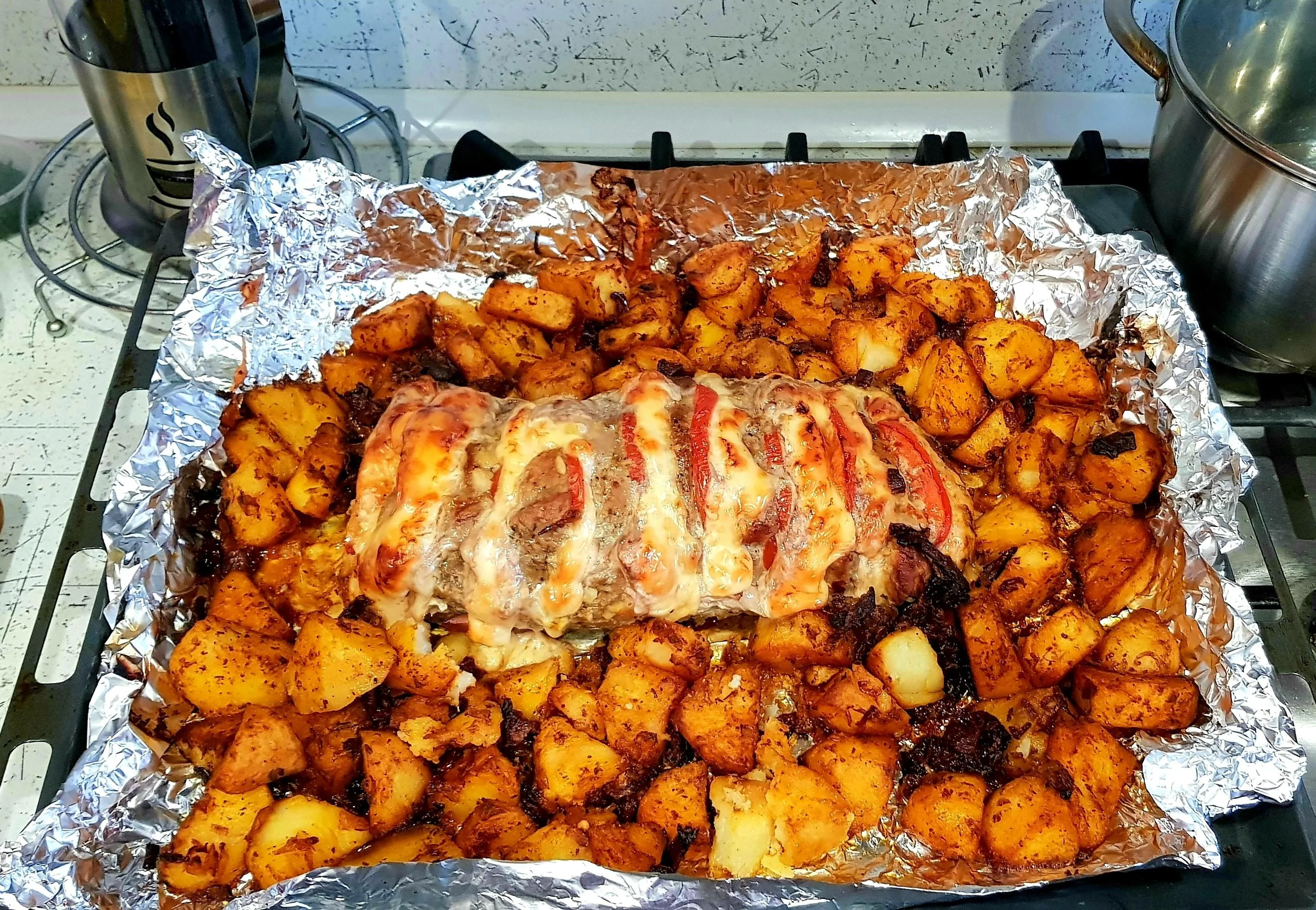 Ароматная праздничная свинина, фаршированная сыром и помидорами