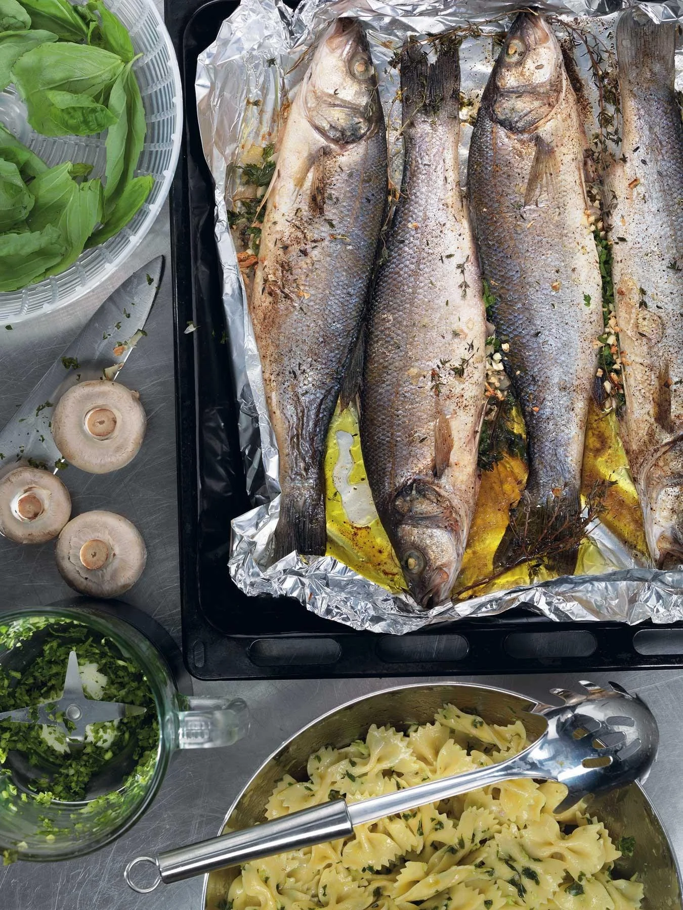 ШАГ 3 Результатом нафаршировать брюхо рыбин, полить рыбу оливковым маслом и лимонным соком, посолить и поперчить. И поставить в духовку, разогретую до 180 градусов, на пятнадцать минут.
