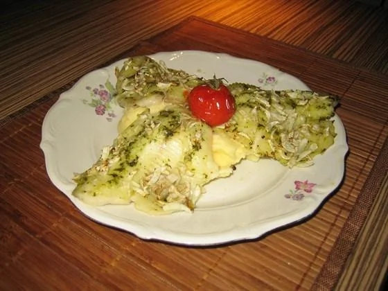 ШАГ 3 Выложить рыбу на противень, застеленный пергаментной бумагой. Бумагу можно смазать сливочным маслом, дабы застраховаться от прилипания к ней краев филе.