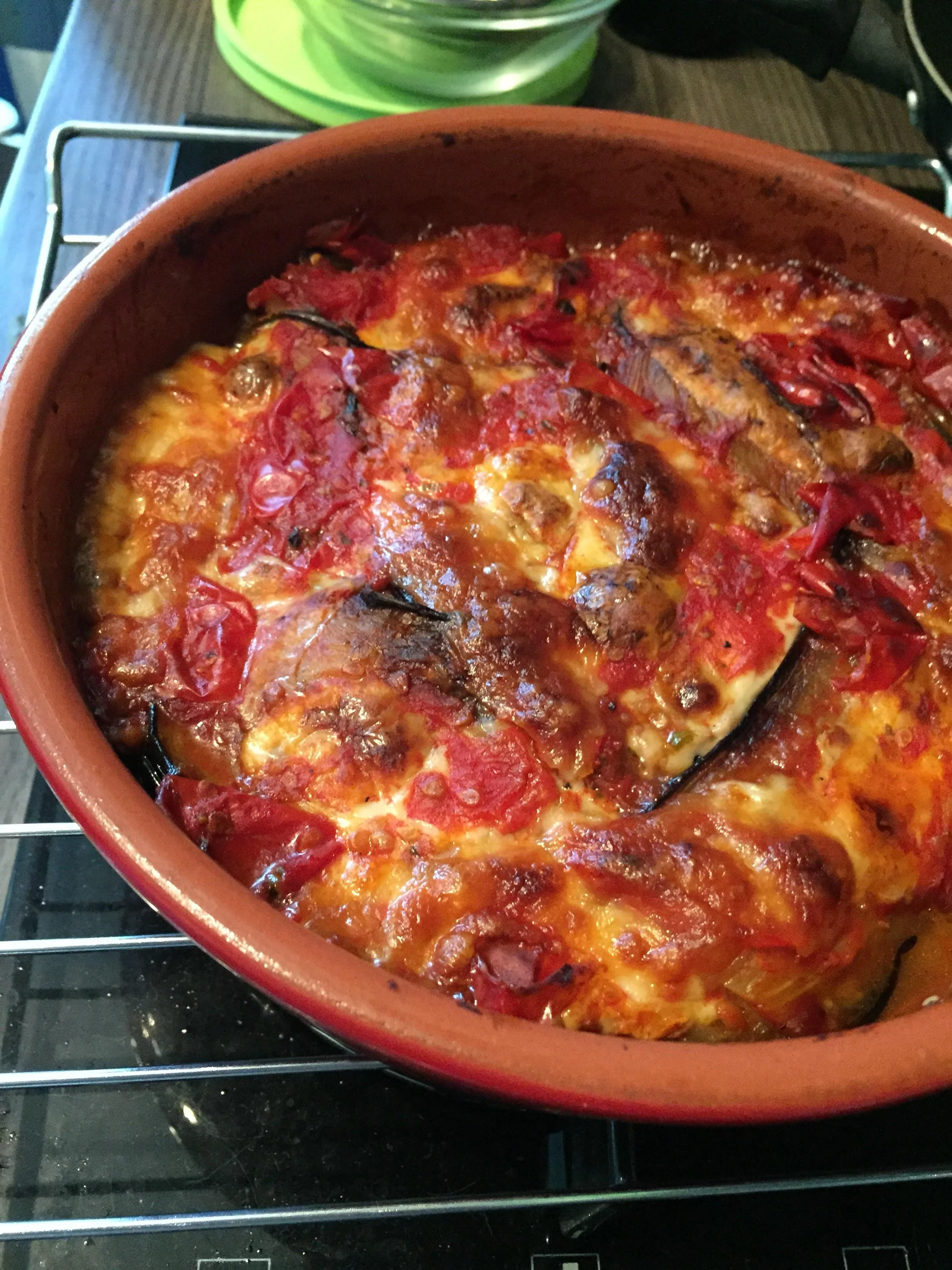 ШАГ 10 Полить томатным соусом и уложить еще слой баклажанов с томатами, а сверху слой моцареллы.