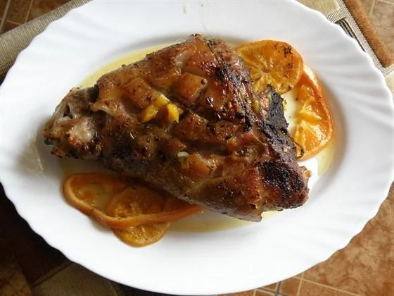 Рулька свиная, запеченая на мандаринах