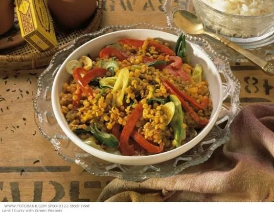 ШАГ 4 Посыпать порошком карри. Добавить чечевицу вместе с отваром. Все тщательно перемешать и тушить еще 10 минут. Посолить и поперчить.
