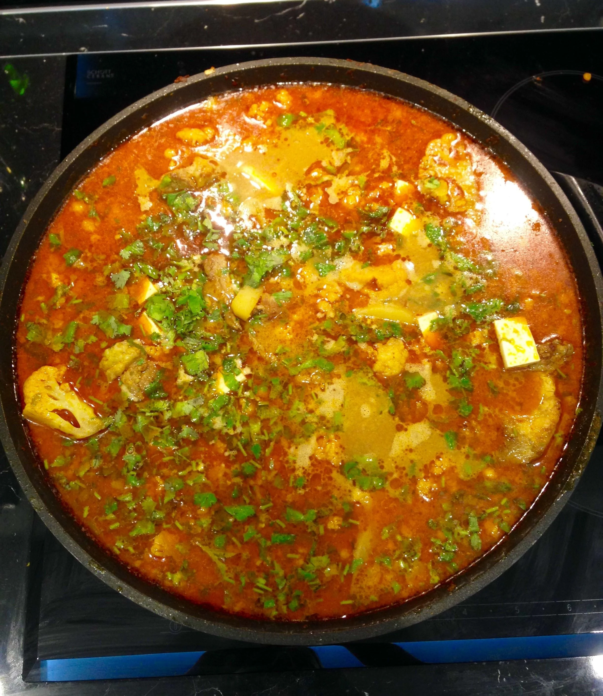 Красный карри со свиными ребрышками, картошкой и тофу