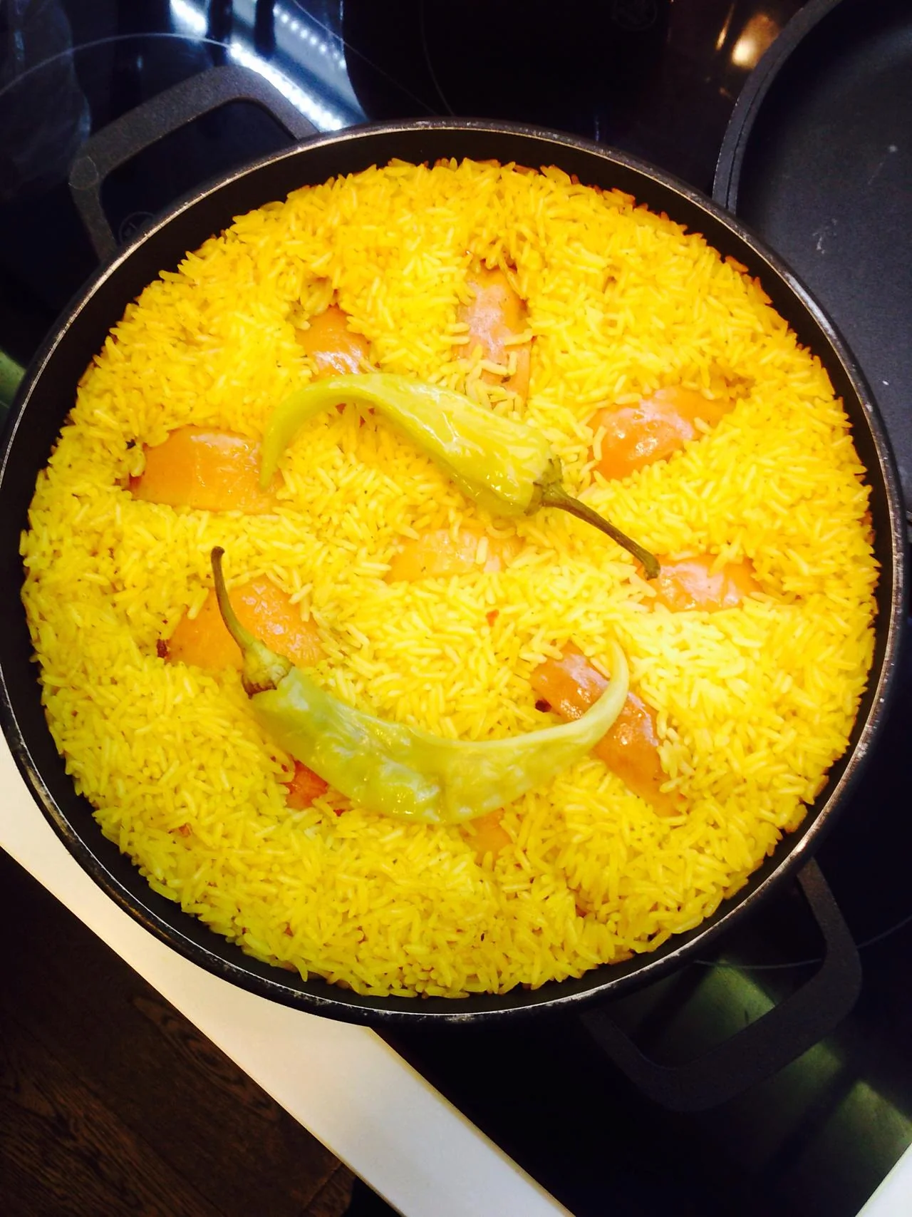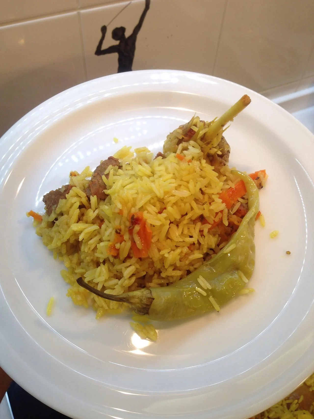 ШАГ 7 Попробовать и, если что, подсолить зирвак, увеличив огонь, довести его до максимального кипения. Тогда разложить сверху промытый рис, разровнять его. Над рисом должно быть примерно полсантиметра воды — если ее окажется меньше, можно подлить кипятка. Варить рис около двадцати минут, до почти полной готовности. Чтобы удостовериться, что рис не подгорает, можно его нежно помешивать.