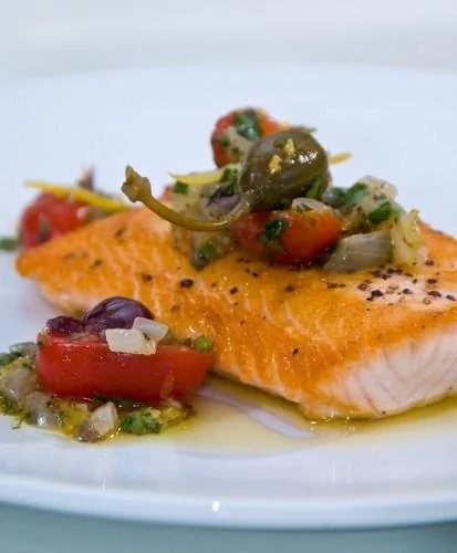Ингредиенты для приготовления Запеченый лосось с томатами и маслинами: