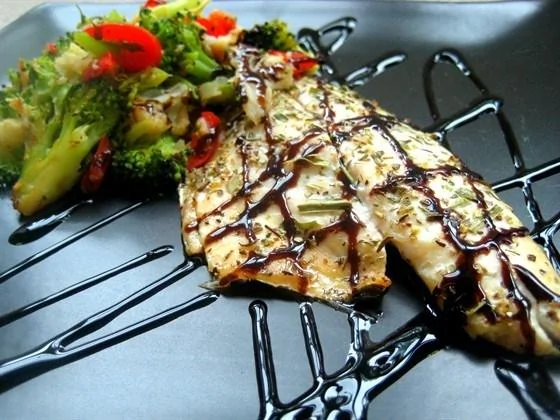 ШАГ 3 Пока тушатся овощи, хорошо промойте рыбу и выложите ее на фольгу, смазанную оливковым или же простым маслом. Выжмите лимонный сок и смажьте рыбу (если есть купленный, то можно использовать и его). Затем посолите и поперчите, а сверху выложите листья базилика. Хорошо заверните в фольгу и поставьте в духовку на 20 минут.
