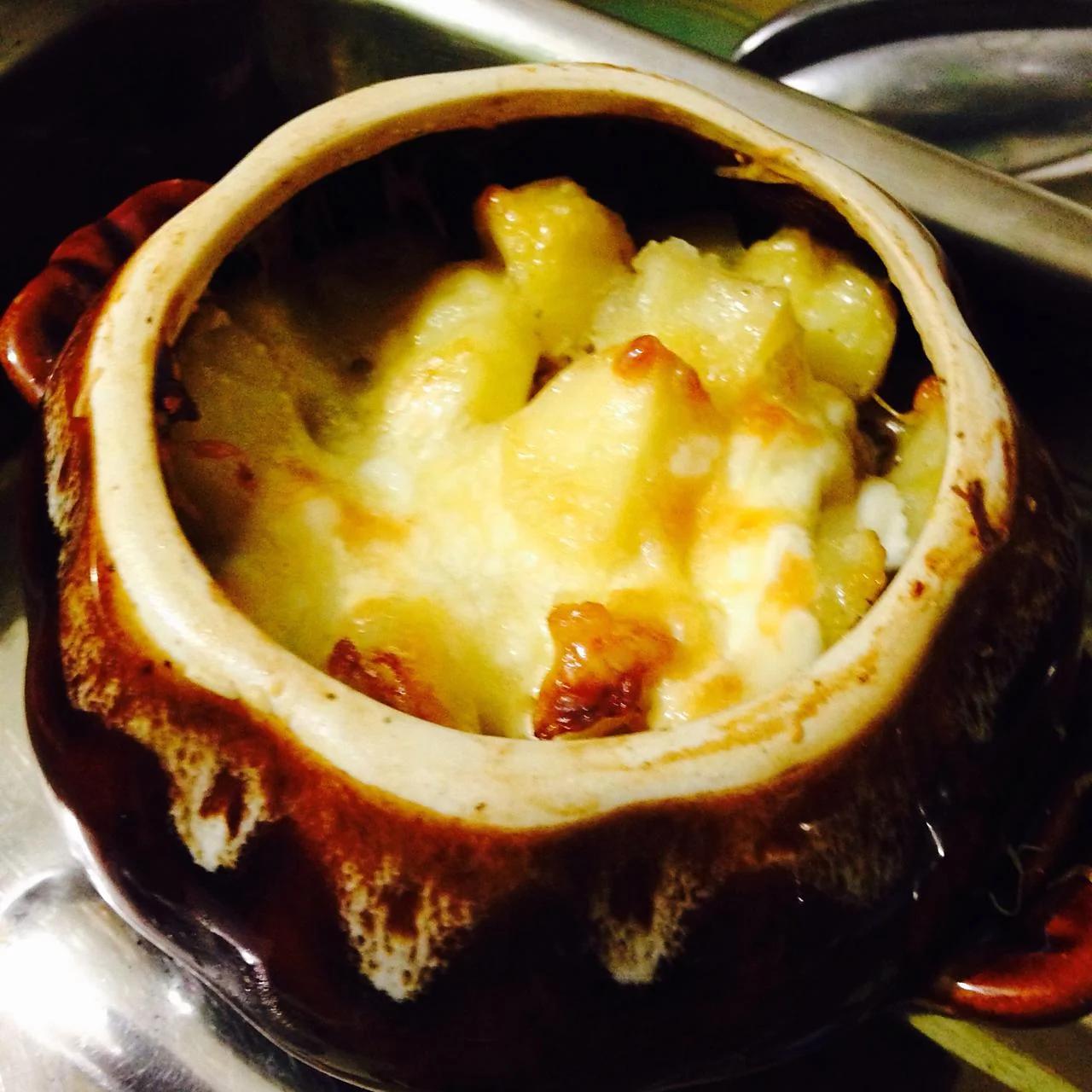 ШАГ 3 Кипяченную воду вылить в сковородку с остатками масла, добавить немного соли и приправ. Потом аккуратно перелить жидкость в горшочек.