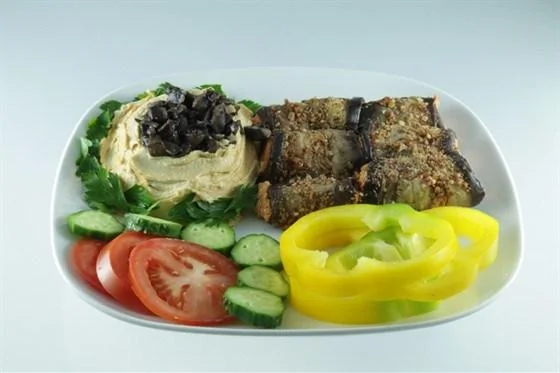 ШАГ 4 Выкладываем все красиво на тарелки вместе с хумусом и черри — обед на четверых готов!