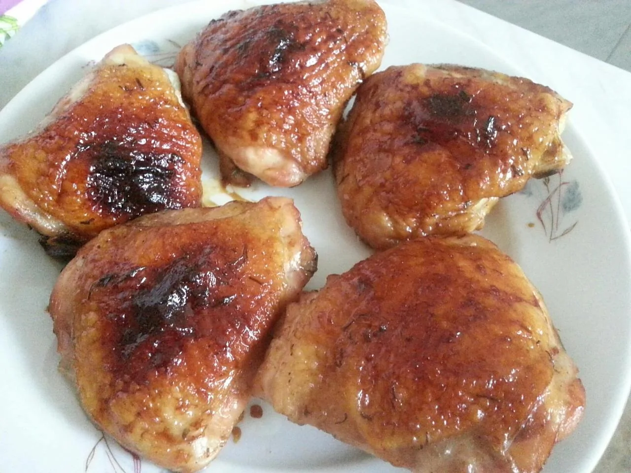 ШАГ 3 Затем окорочка выложить на противень и запекать в духовке до готовности и золотой корочки.
