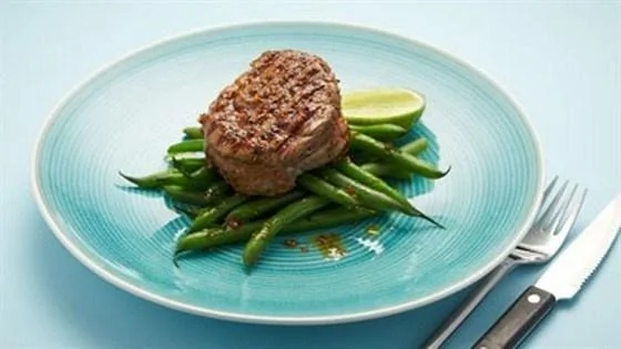 Стейк на гриле с французским зеленым горошком