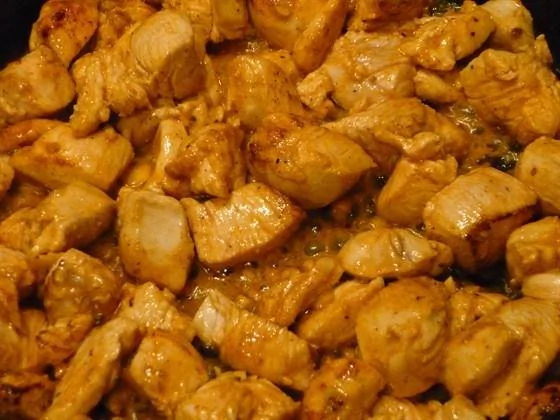 ШАГ 1 Нарежьте куриное филе кубиками размером 2 сантиметра.
