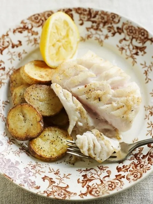 ШАГ 3 Подавать горячую треску без кожи, сбрызнутую оливковым маслом и посыпанную морской солью и свежемолотым черным перцем по вкусу.