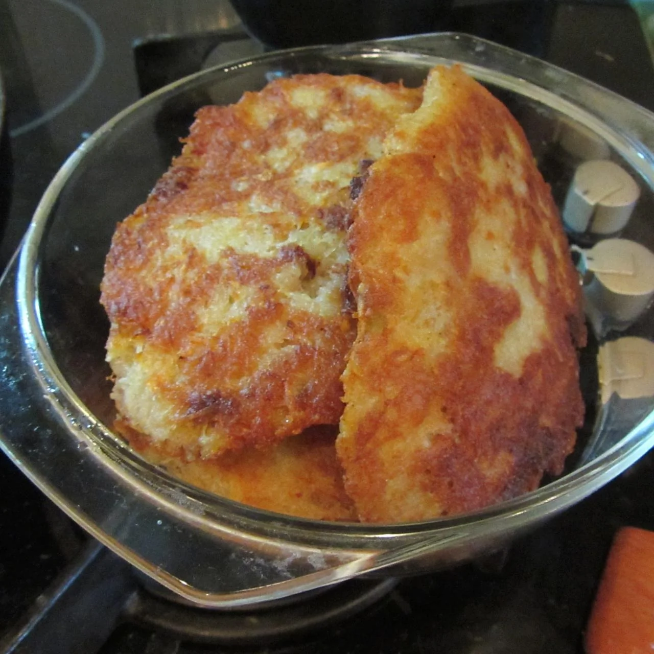ШАГ 4 Выкладываем полученную массу небольшими лепешками на разогретую сковороду с довольно большим количеством масла и жарим до темной корочки с обеих сторон.