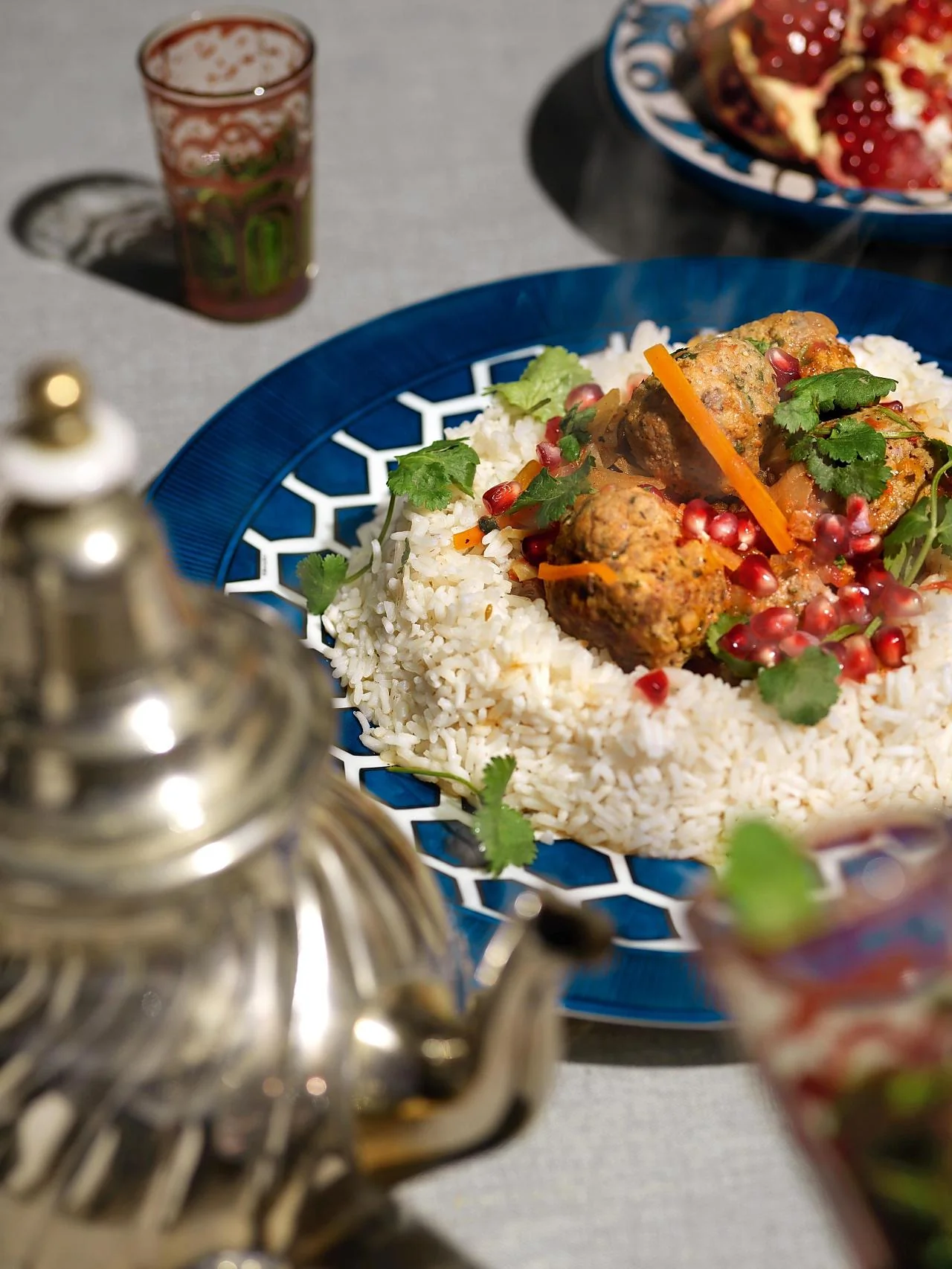 ШАГ 6 Подавать тефтели лучше всего с кускусом, рубленой кинзой и зернами граната.