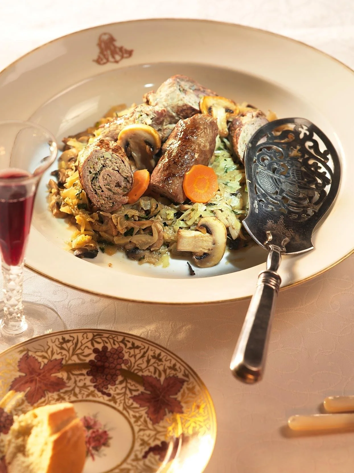 ШАГ 4 Сложить рулеты в кастрюлю, добавить крупно нарезанные морковь и репчатую луковицу. Залить бульоном и вином: жидкость должна покрывать рулеты. Посолить, поперчить, добавить гвоздику. Довести до кипения и потом подержать на слабом огне сорок минут. Готовые социски переложить на подогретую тарелку, укрыть фольгой и поставить в теплое место.