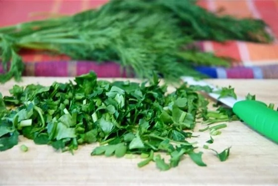 ШАГ 1 Укроп и петрушку нарезать мелко.