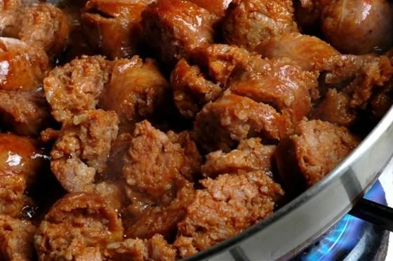 ШАГ 2 При подаче к столу полить маслом, на котором колбаса жарилась.