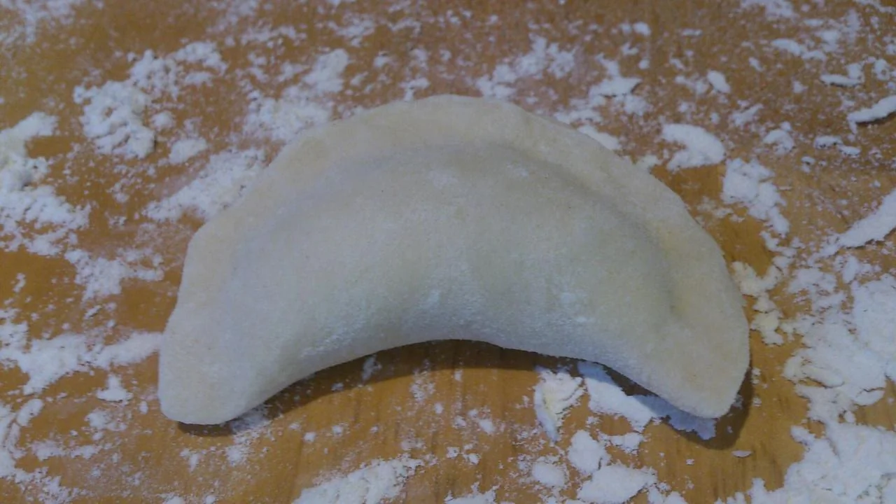 ШАГ 11 Края вареника тщательно залепите. При желании можно украсить край вареника «косичкой».