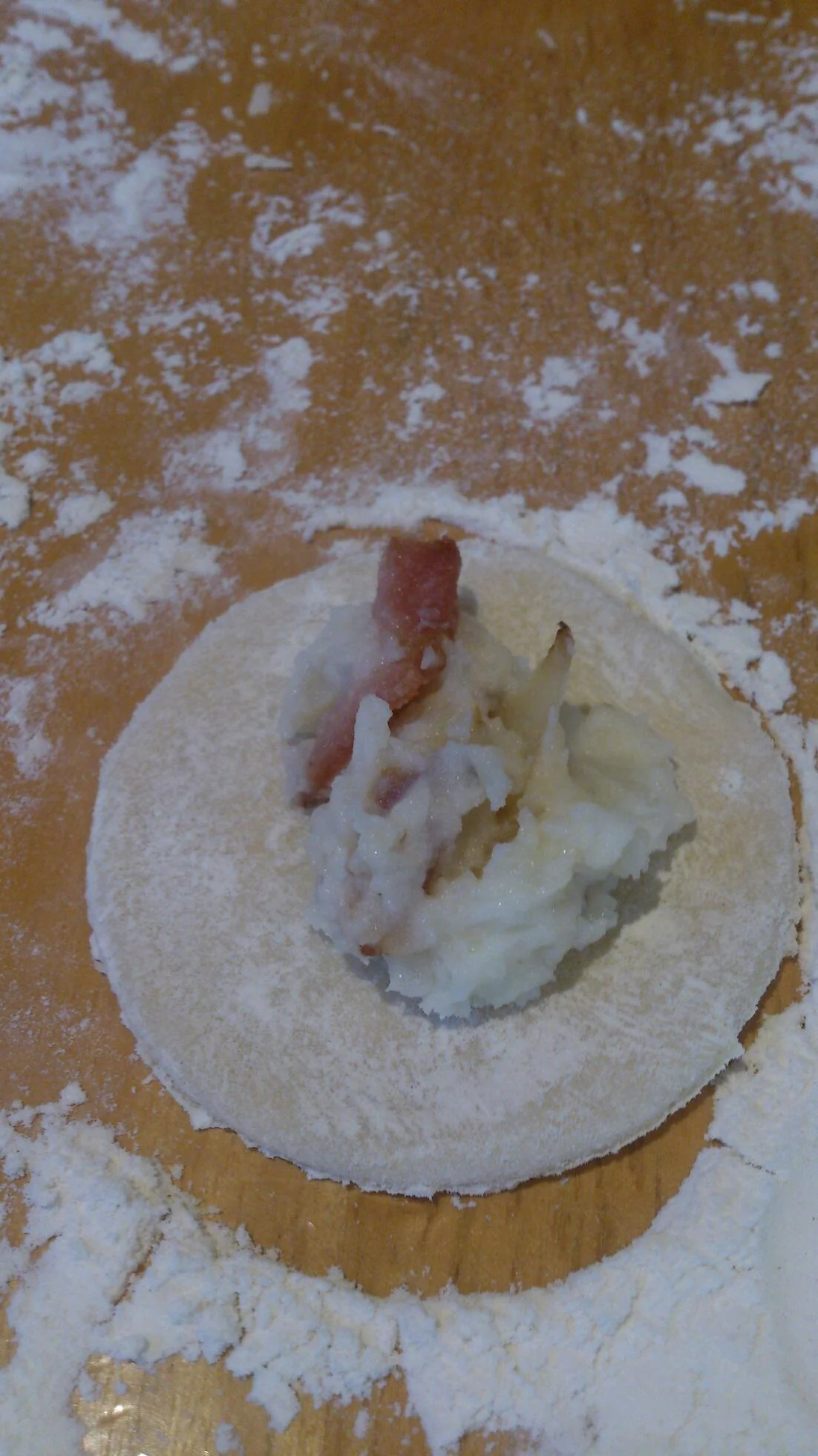 ШАГ 10 На середину кружочка положите неполную чайную ложечку начинки.