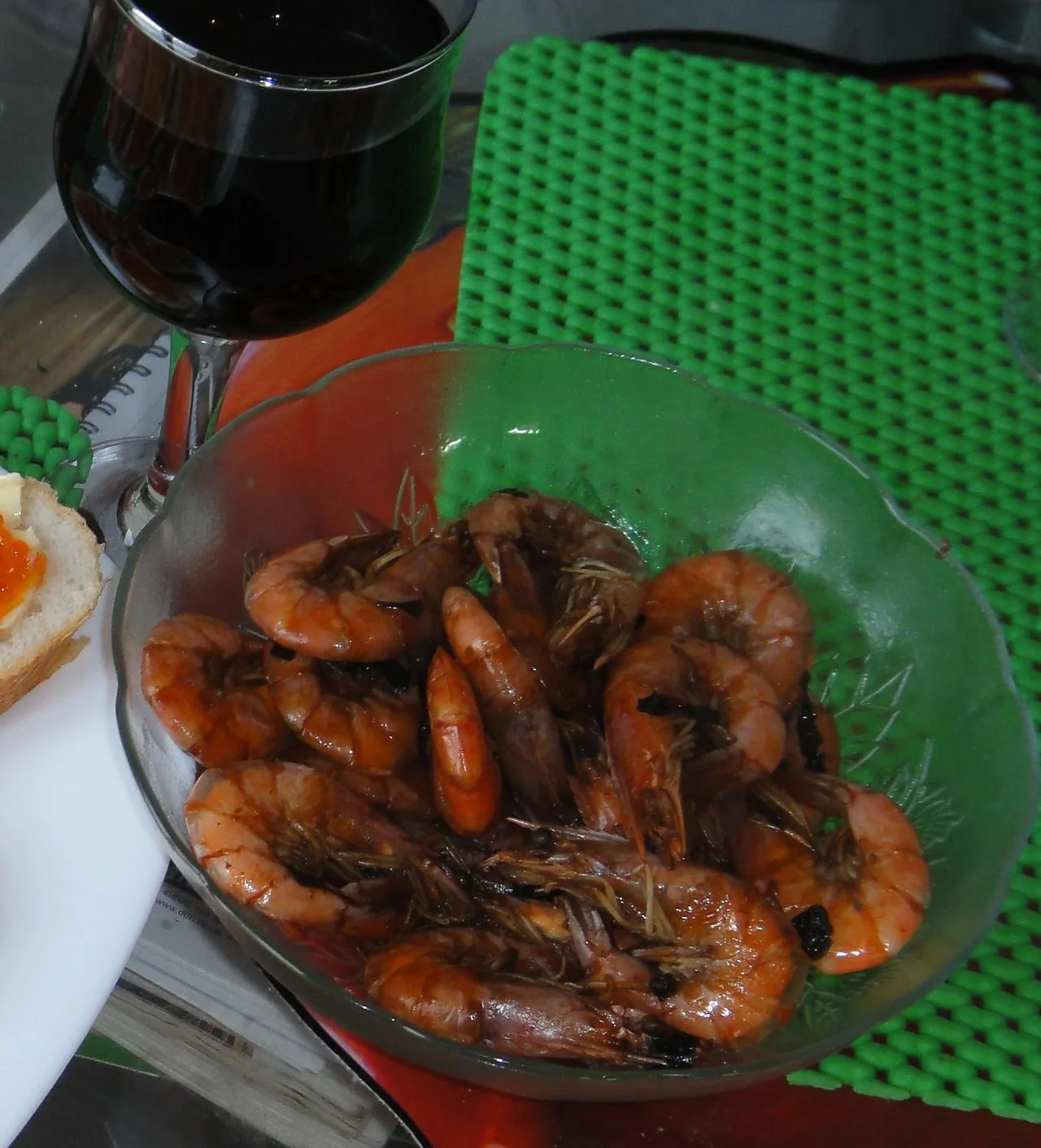 Ингредиенты для приготовления Королевские креветки с базиликом в красном вине: