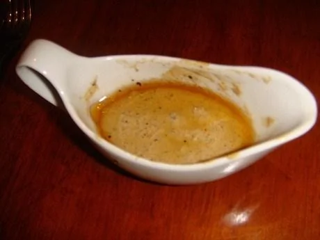 ШАГ 2 Для соуса с перцем в небольшой кастрюльке подогреть сливки, ни в коем случае не доведя до кипения. Добавить перец горошком, ворчестерский соус и коньяк (которого муж мой добавил немного больше :-) — маленькую чашечку). 2–5 минут подержать на небольшом огне и сразу, перелив в соусник, подавать к стейку на стол.