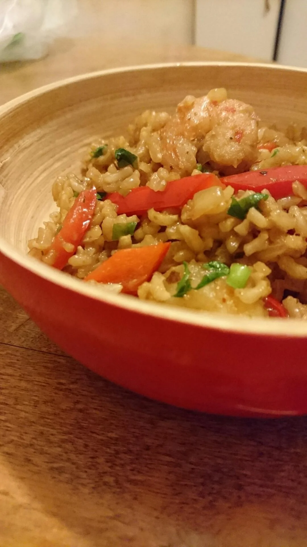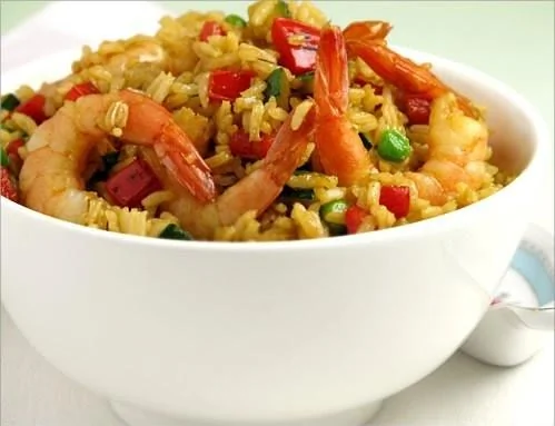 Ингредиенты для приготовления Жареный рис с креветками и сладким перцем: