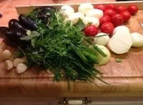 Ингредиенты для приготовления Аджапсандали с цыпленком табака: