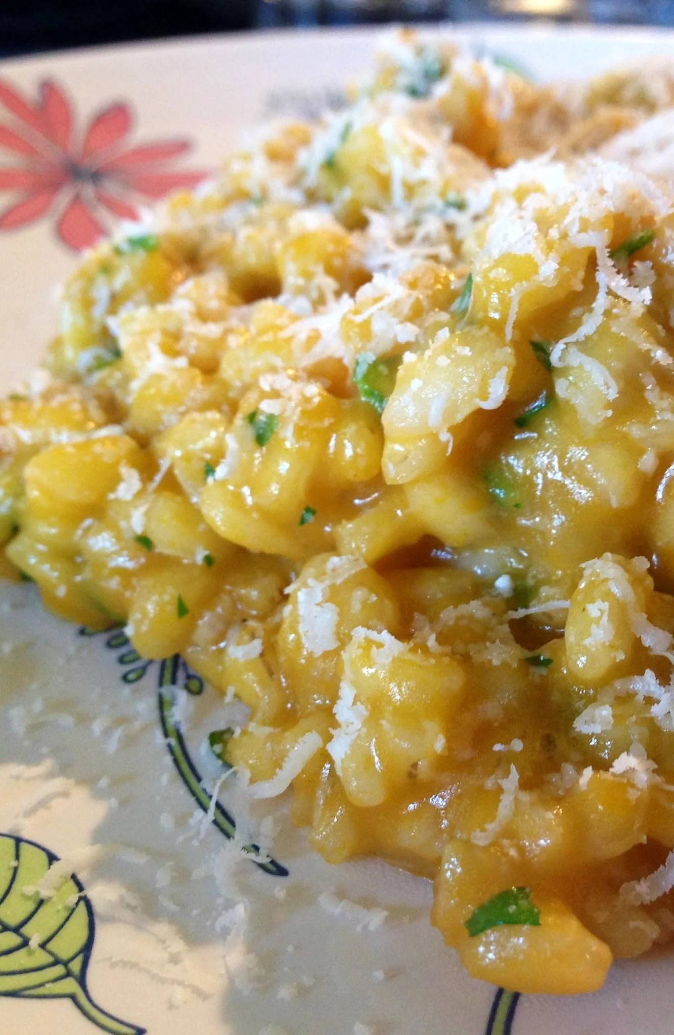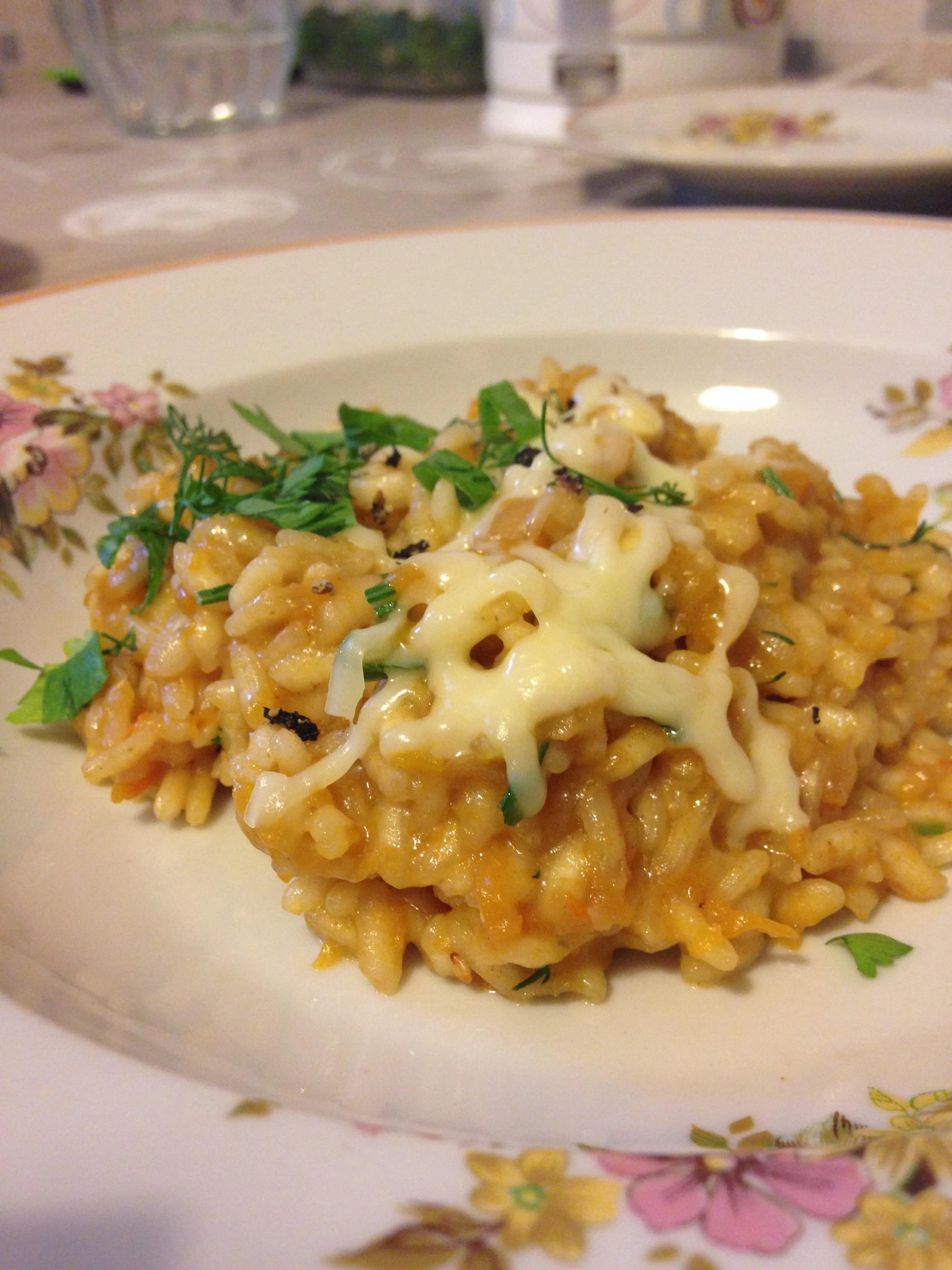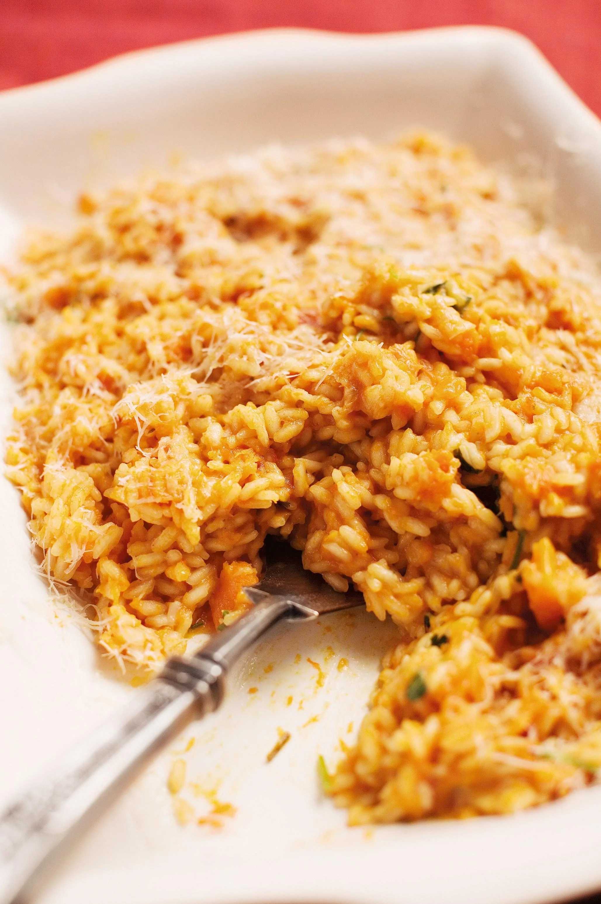 Через двенадцать минут добавить рубленую зелень петрушки, перемешать ее с рисом и тыквой. Накрыть сковороду крышкой и выключить огонь. Еще через пару минут ризотто можно раскладывать по тарелкам, сдабривая тертым пармезаном.