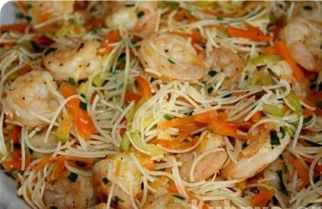 Рисовая лапша с креветками и овощами по тайски