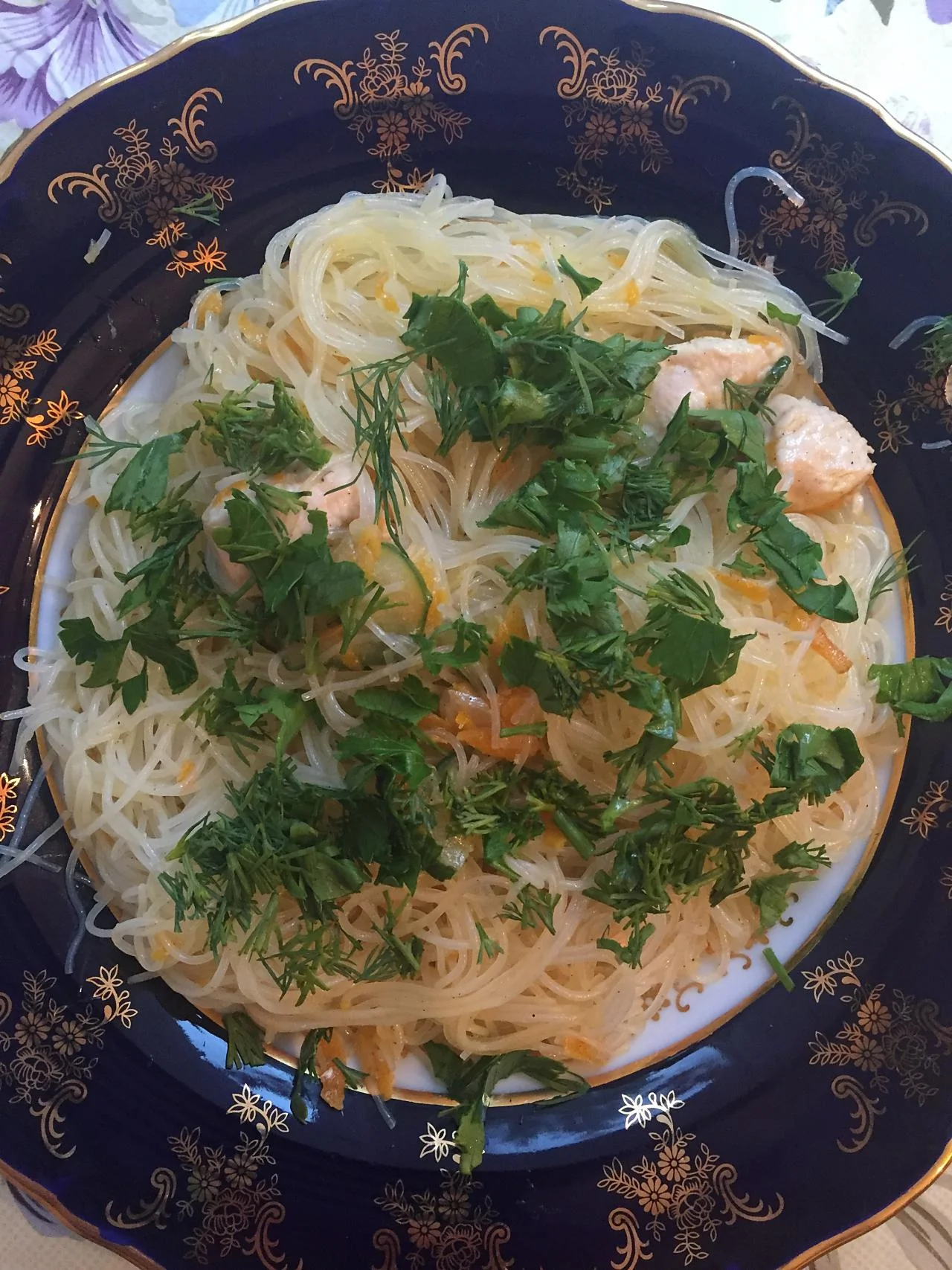 ШАГ 2 Рисовую лапшу сварить согласно инструкции на упаковке. Готовую лапшу обязательно хорошо промыть в холодной воде, дабы избавить ее от крахмала, иначе она слипнется.