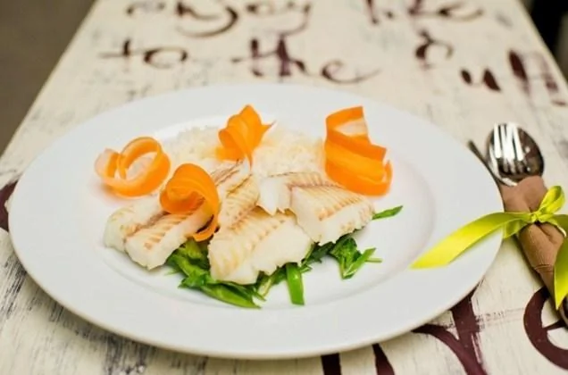 Макрурус с рисом басмати и соте из шпината и рукколы