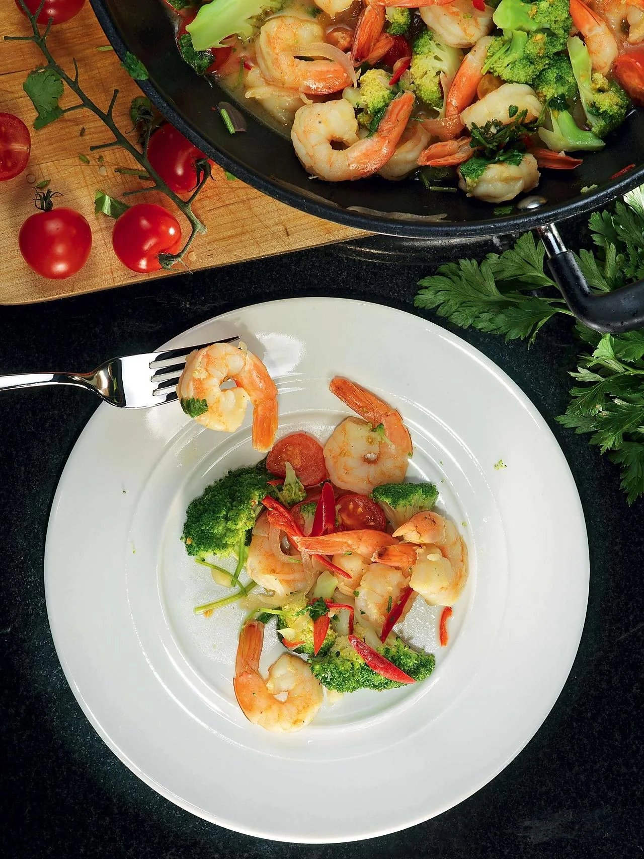 Брокколи с креветками и острым перцем
